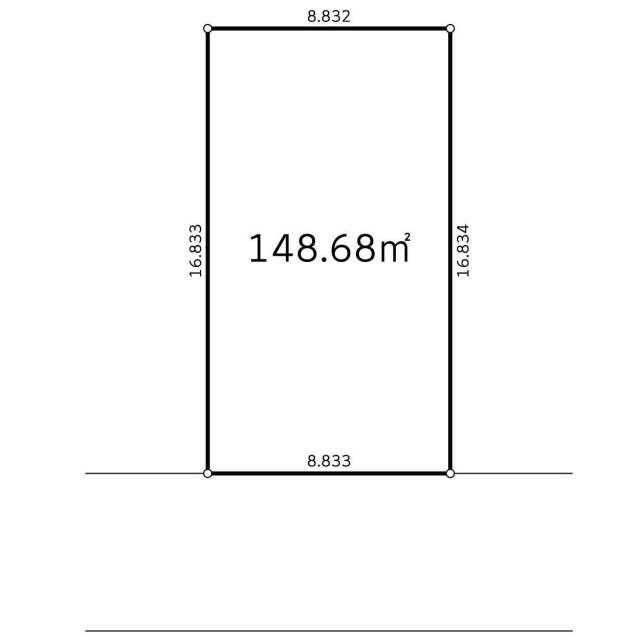 | 土地面積 | 148.68㎡ | 坪数 | 44.97坪 | 坪単価 | 22.02万円 |